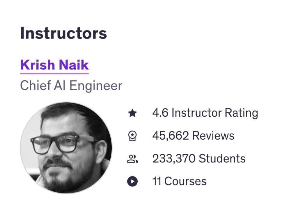 I am the Ex Co-founder and Chief AI Engineer of iNeuron and my experience is pioneering in machine learning, deep learning, and computer vision,Generative AI,an educator, and a mentor, with over 15 years’ experience in the industry. This is my Data Science Course where I explain various topics on machine learning, deep learning, and AI with many real-world problem scenarios. I have delivered over 30+ tech talks on data science, machine learning, and AI at various meet-ups, technical institutions, and community-arranged forums. My main aim is to make everyone familiar of ML and AI.
